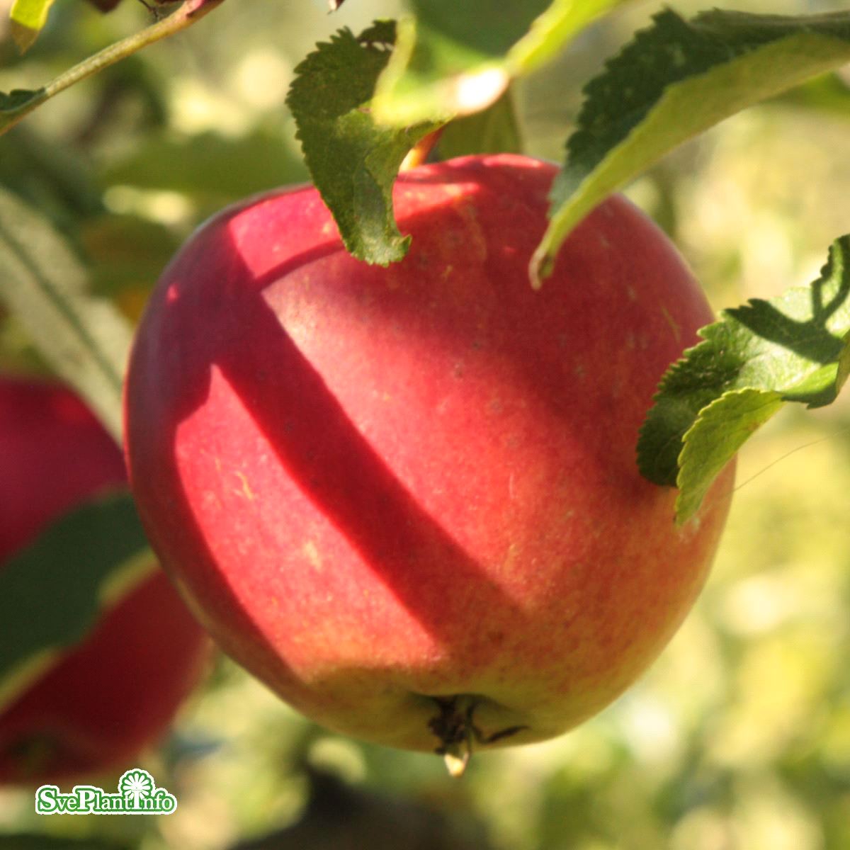 Medelstor, gulgrön frukt med röd täckfärg.