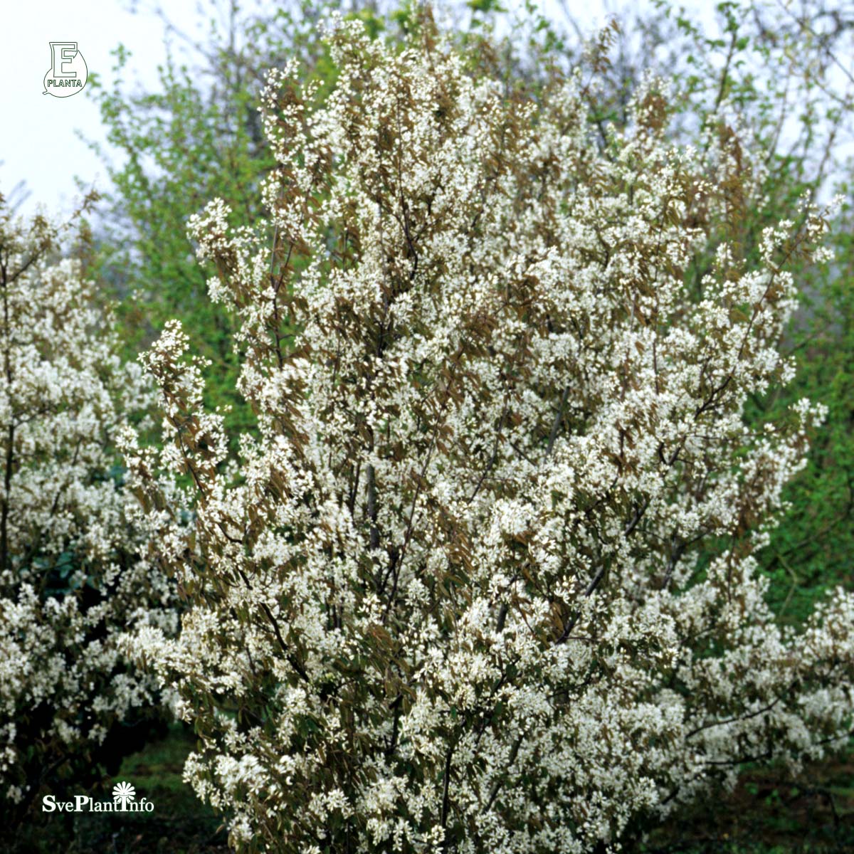 Vita blommor i maj-juni,Mörkblå söta, ätliga bär.