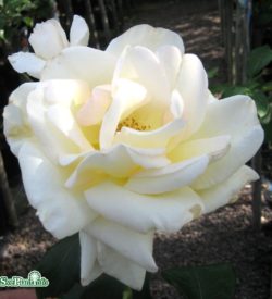 Crèmevita, stora fyllda, doftande blommor i klasar.
