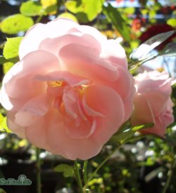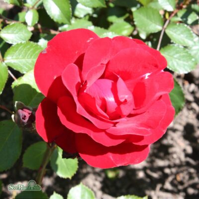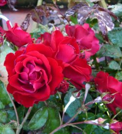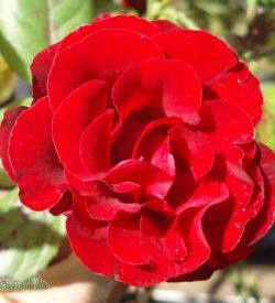 Mörkröda-blodröda medelstora fyllda blommor. Svag doft.